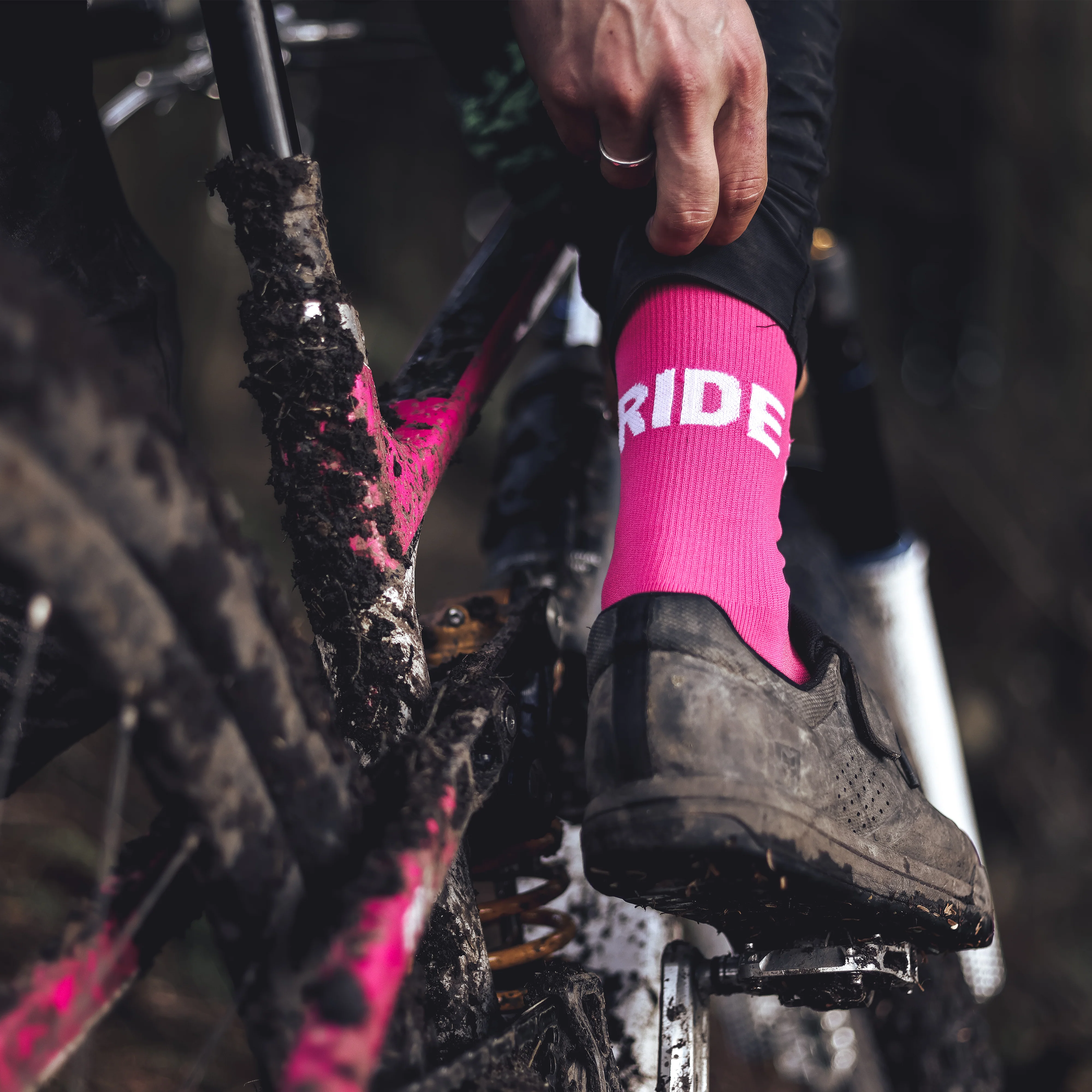 Signature RIDE performance sock with front and rear facing RIDE logo.